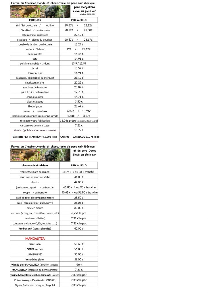 LA GOURMET : côtes filet, côtes échine, rôti, rouelle, poitrine tranché, saucisse et saucisson à cuire.